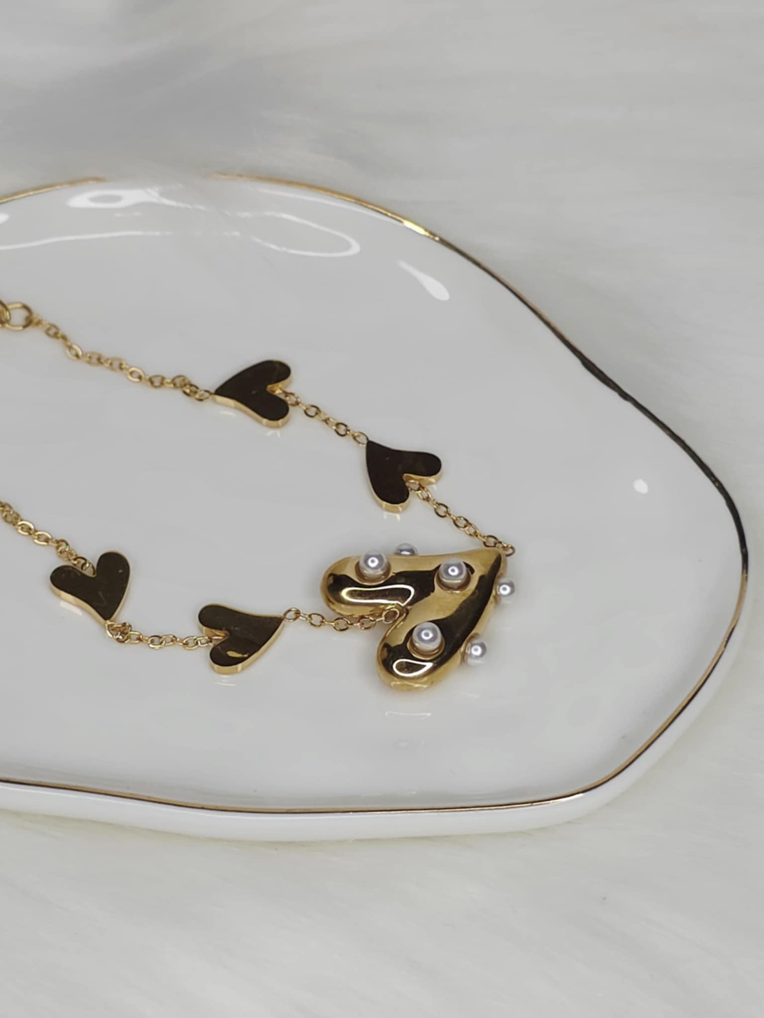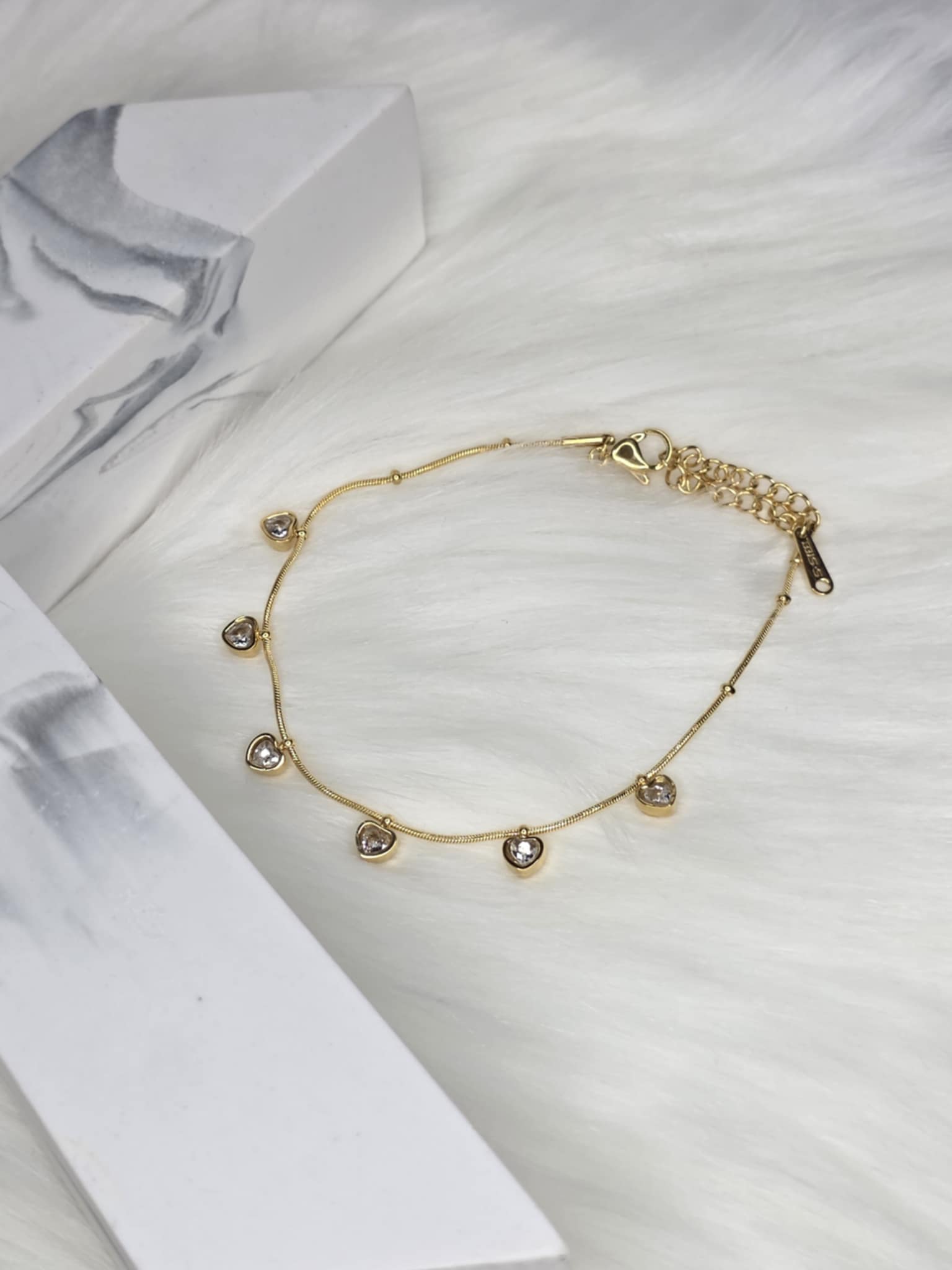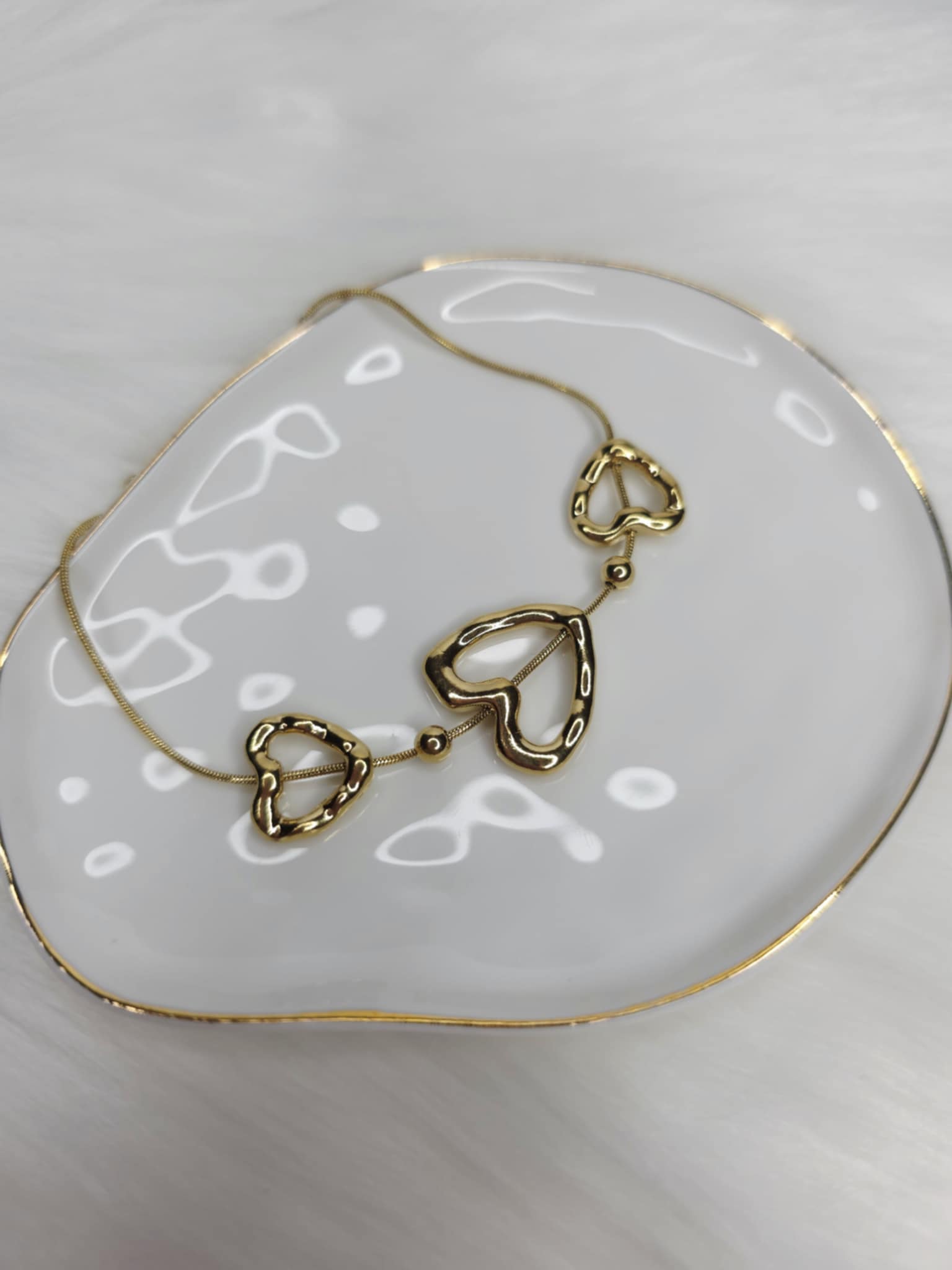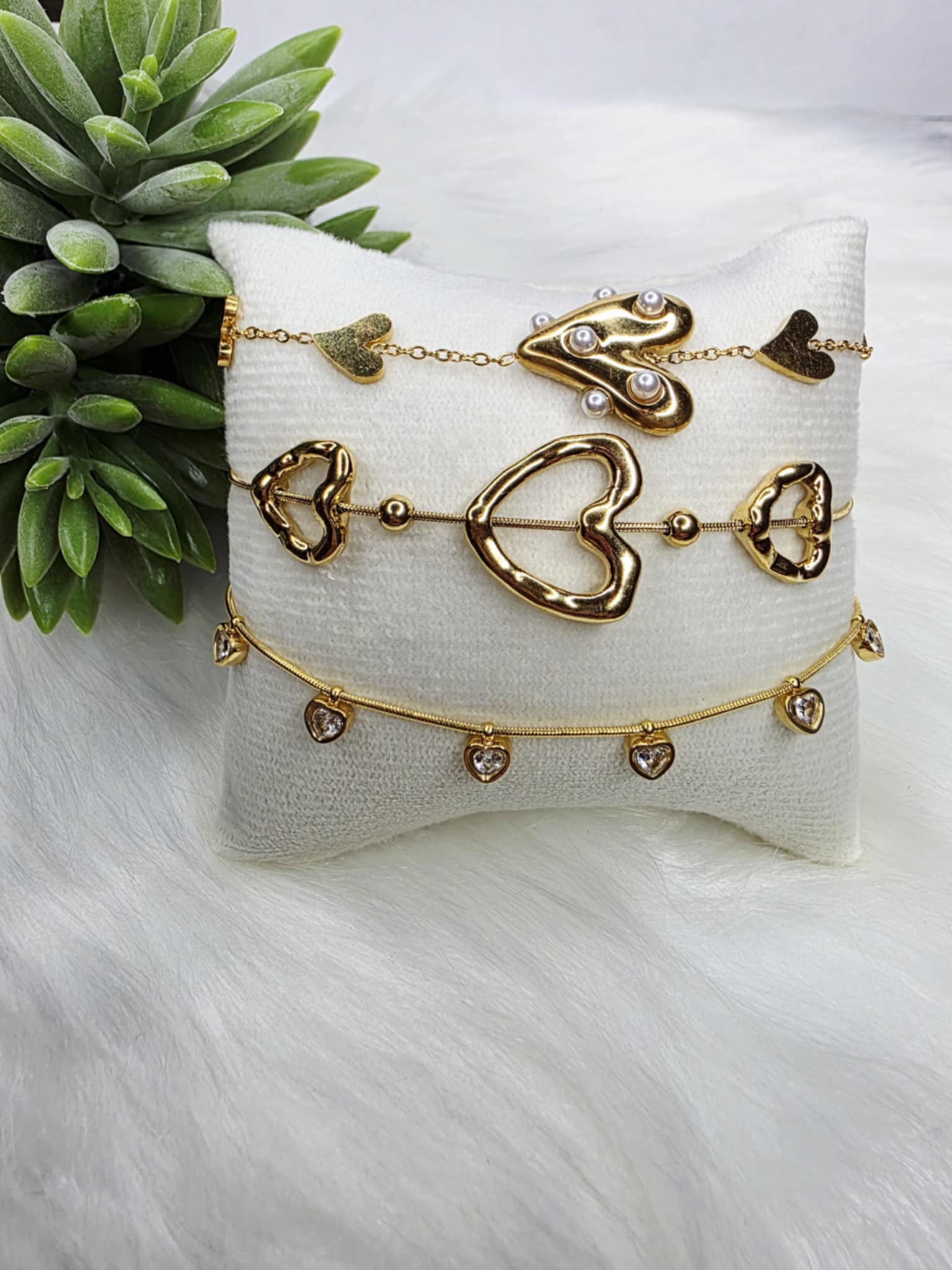 Beautiful trio of stainless-steel bracelets, heart details, plated in 18K gold.