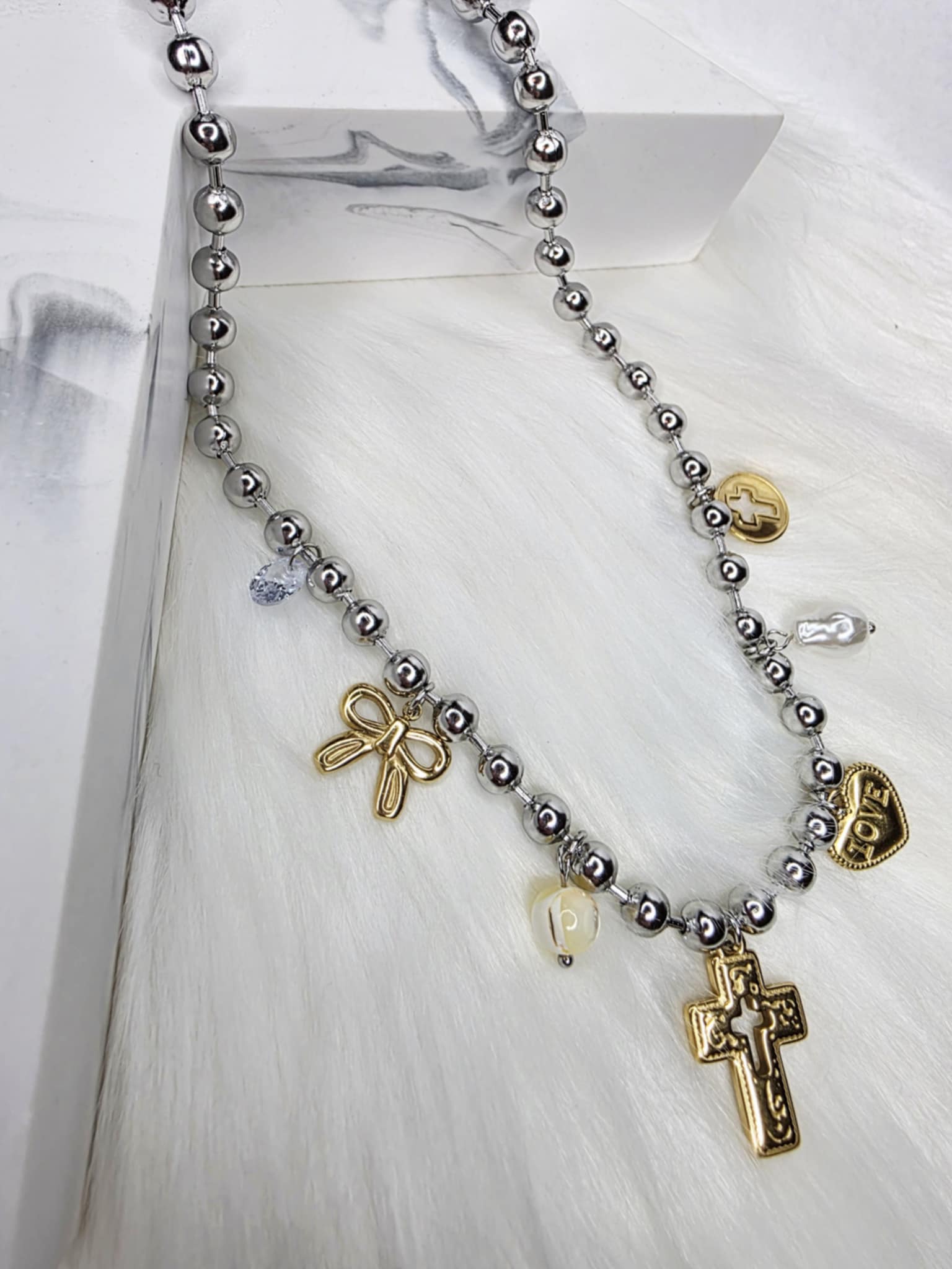 18K gold-plated multi-charms necklace with cross pendants—perfect for daily wear or special occasions.